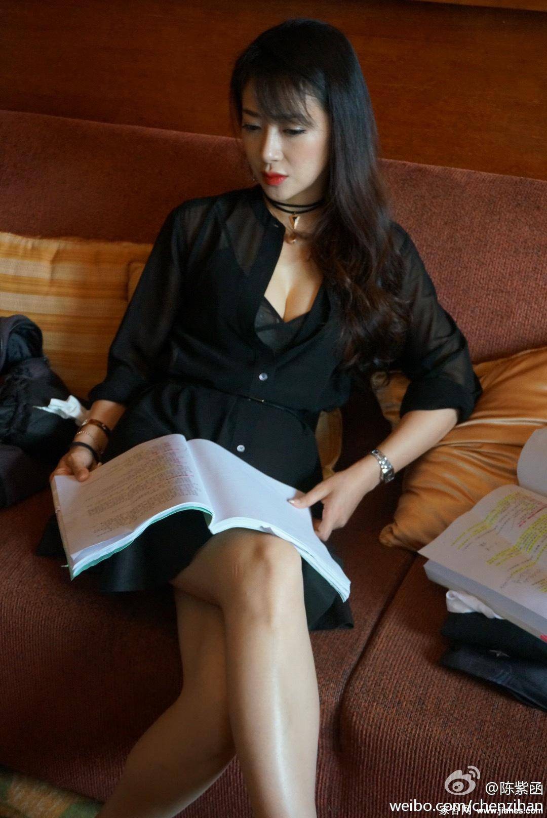 陈紫函侧身而立短裙黑丝展现修长腿部线条